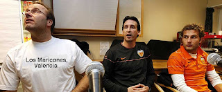 Mens Rosenborgspillerne har blondiner på slep, bruker Valenciaspillerne blonder med slep.